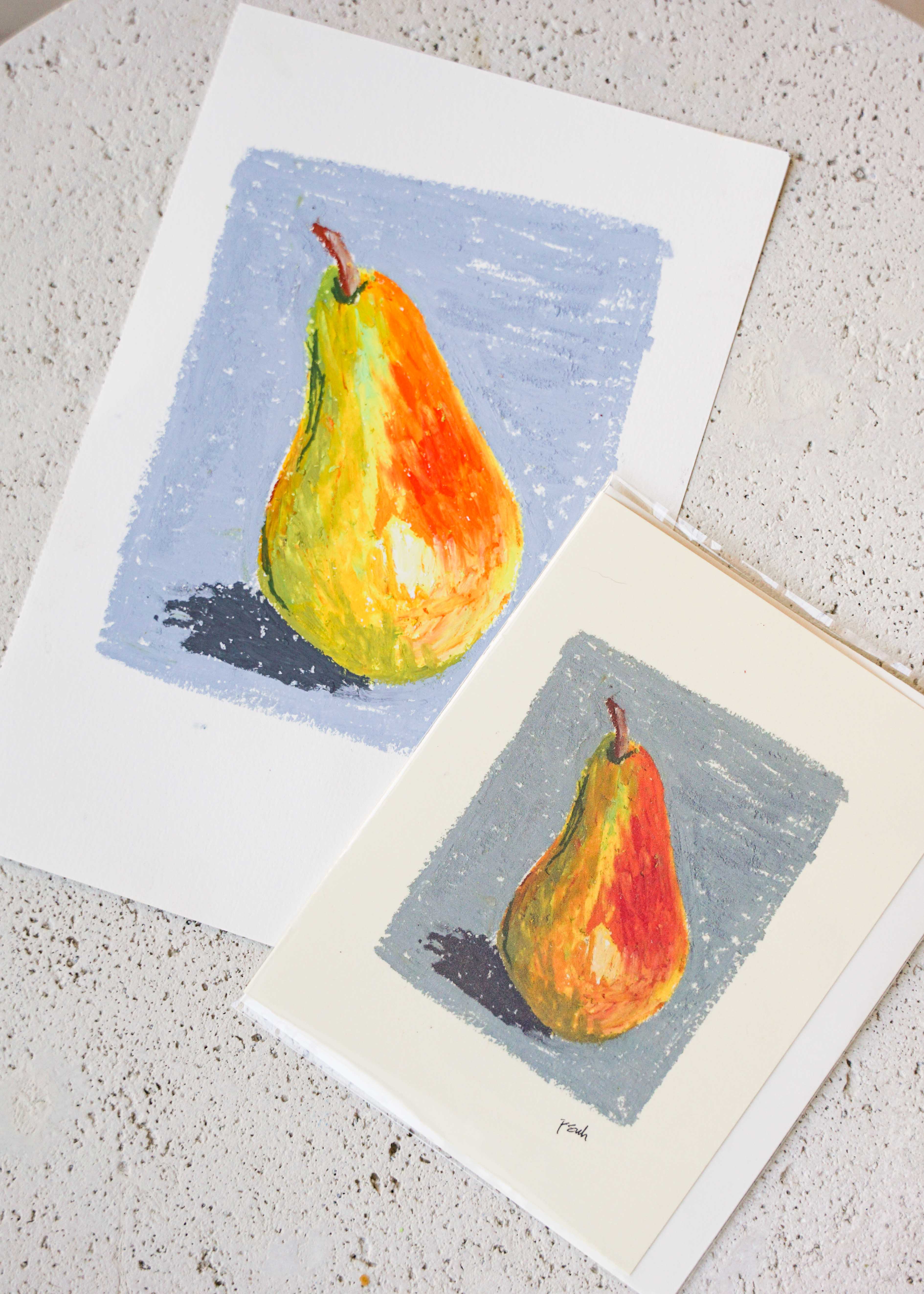 We start with original oil pastel drawings and print them on luxurious card stock.